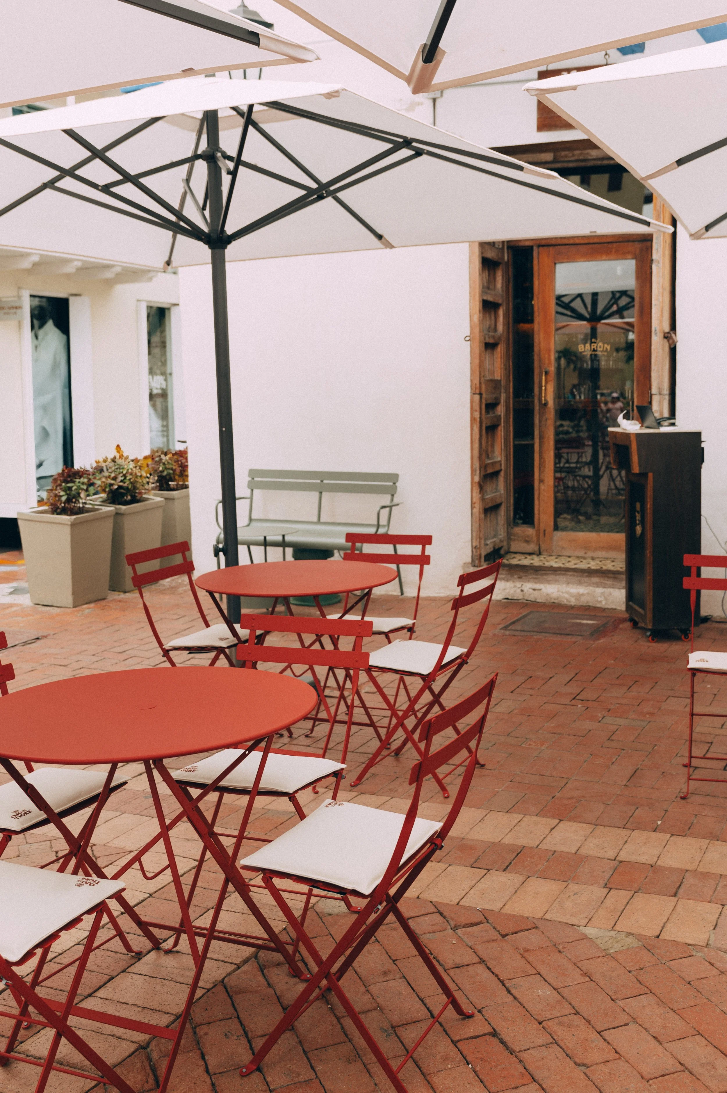 Este espació esta equipado con paraguas de 3x3 metros para proteger del sol o lluvia y un sistema de sonido para colocar nuestra selección de música curada por expertos.